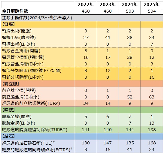 - ロボット支援腹腔鏡下腎尿管全摘術:3件(2025年から開始)