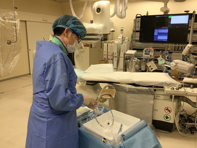 IVAS・OCTなど術野の外回りを担当し血管内画像装置の操作を行い,検査・治療物品等を清潔野に出したりします。