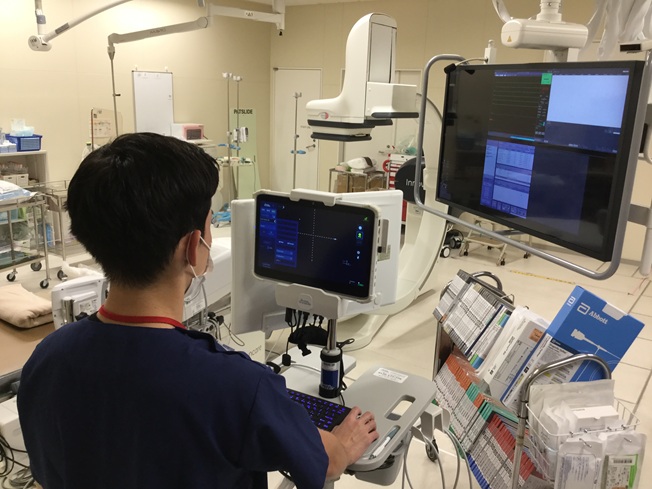 ペースメーカー等の植込み時、Drへのサポートや各種測定の操作をしています。