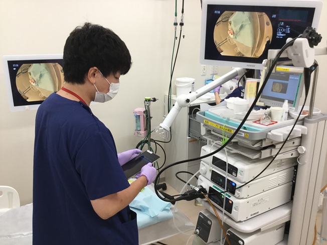 内視鏡センターの内視鏡装置類・洗浄器を始業点検を行い毎日安全使用できるよう貢献しています。